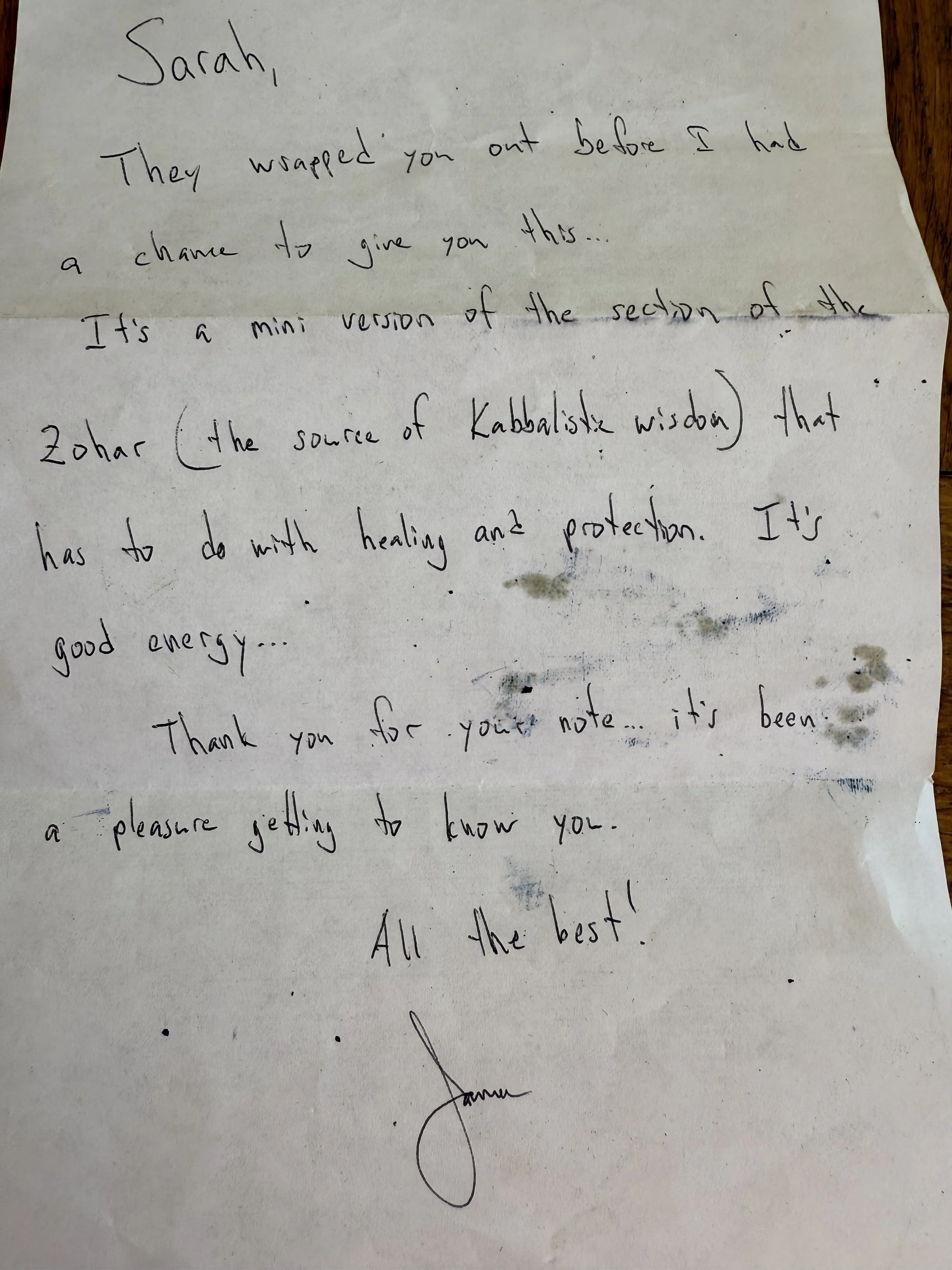 When we worked together on Salem Falls, James gave me a mini Zohar for healing and protection.