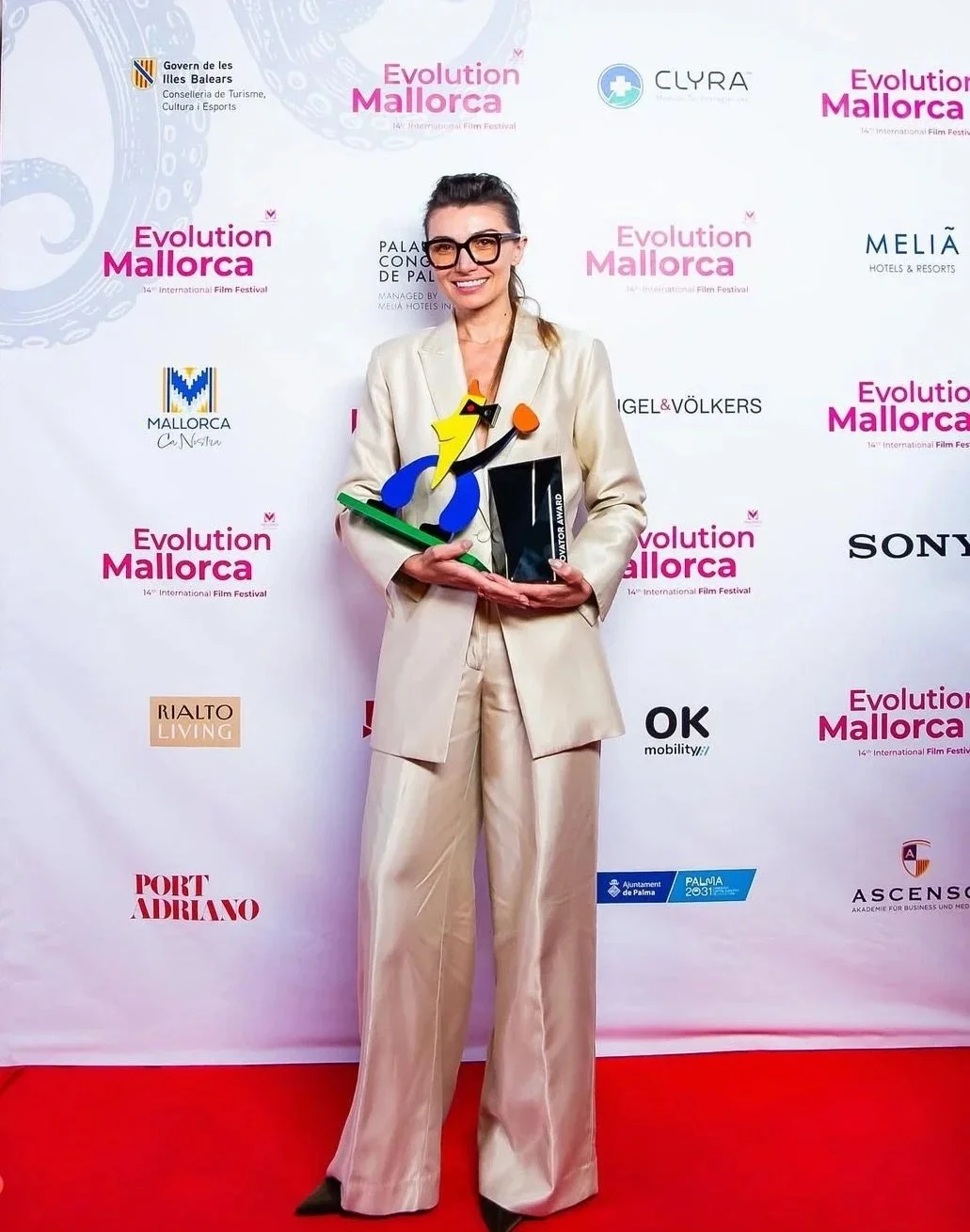 Alex Burunova winning the Best Emerging Director award at Evolution Mallorca 2025.